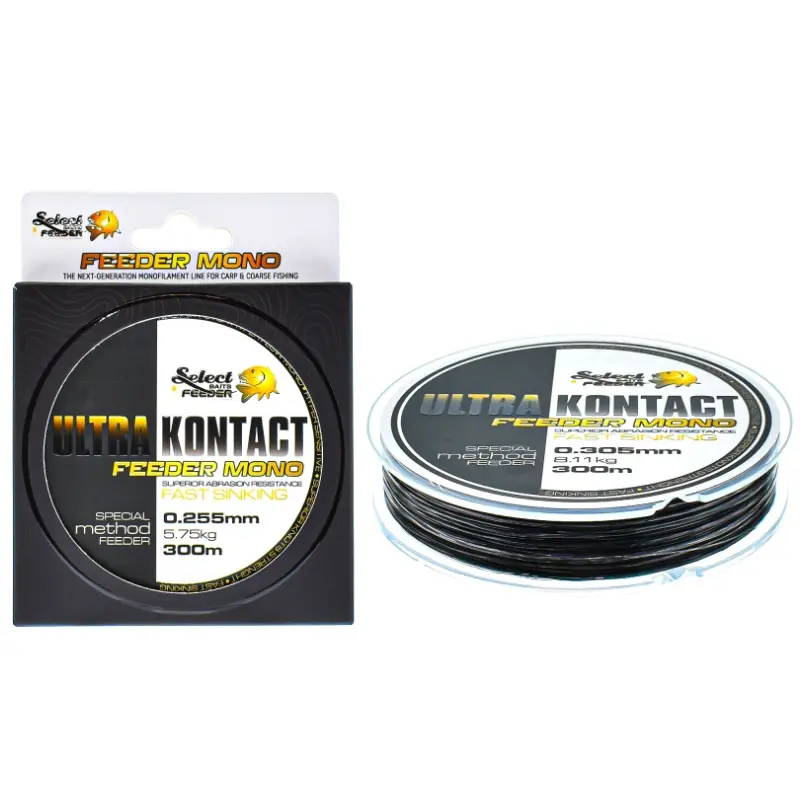 Noutate Select Baits pentru pescuit la feeder, fir monofilament, premium, Ultra Kontact Feeder Mono 300m, are memoria scazuta si elongatia redusa, caracteristici datorate structurii complexe a firului. Fir feeder cu scufundare rapida!!