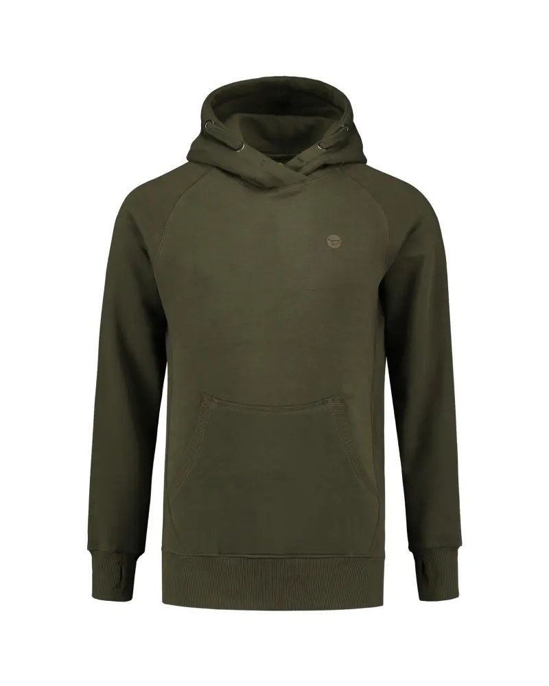 Noul hanorac Korda TK Dark Olive Hoodie este un hanorac clasic optimizat pentru pescuit, cu croiala ergonomica si detalii functionale. Fabricat din fleece jersey de 340GSM (60% bumbac, 40% poliester), ofera caldura si confort sporit, fiind ideal pentru zilele reci. Croiala „action fit” cu umeri raglan si panouri elastice sub brat permite libertate totala de miscare. Gluga are design incrucisat si snururi scurte, gandite sa nu incomodeze la fotografierea capturilor. Mansetele includ orificii pentru degetul mare, iar buzunarul frontal tip „kangaroo” ascunde doua compartimente verticale pentru telefon, chei sau sounder box.