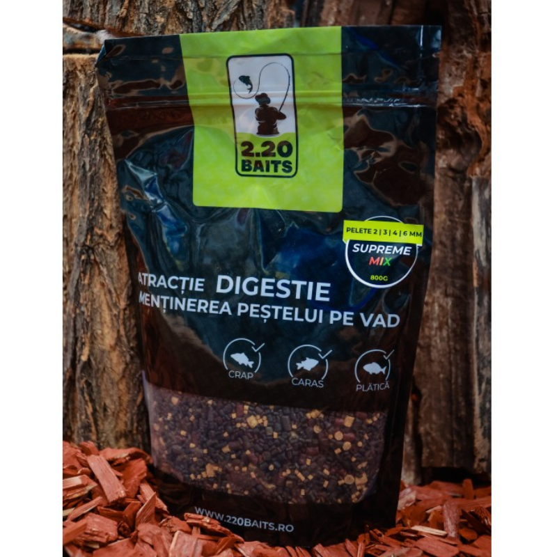Mix micropelete de diferite dimensiuni, 2-3-4-6mm 2.20 Baits, au un profil proteic si nutritiv foarte ridicat. Acestea sunt alegerea ideala in partidele de pescuit in care vizam pesti de apa dulce.