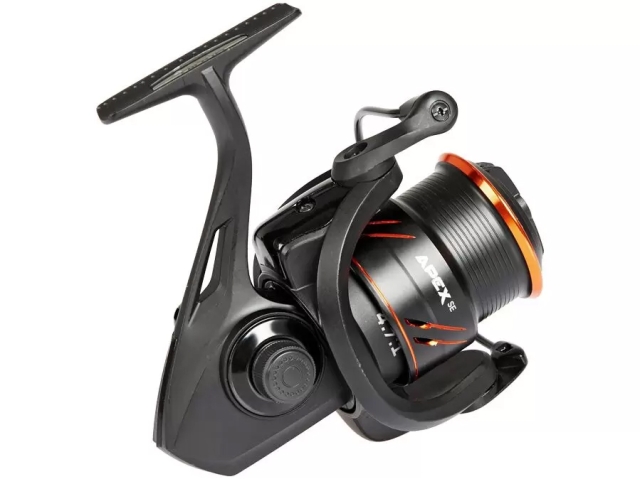 Mulineta Brain Apex SE este destinata pescarilor care doresc un produs fiabil si accesibil la pret. Este echipata cu un mecanism puternic cu un arbote de otel si cinci rulmenti cu bile. Corpul si rotorul sunt realizate din grafit un material usor si puternic. Dispune de un tambur metalic cu profil redus care este adaptat pentru utilizarea firelor textile si monofilament. Manerul metalic este insurubat in axul angrenajului. SPECIFICATII: *Rulmenti: 5+1 *Raport de recuperare: 4.7:1 (77cm) *Capacitate tambur: 0.25mm – 150m 0.30mm – 100m 0.35mm – 75m *Greutate: 390g