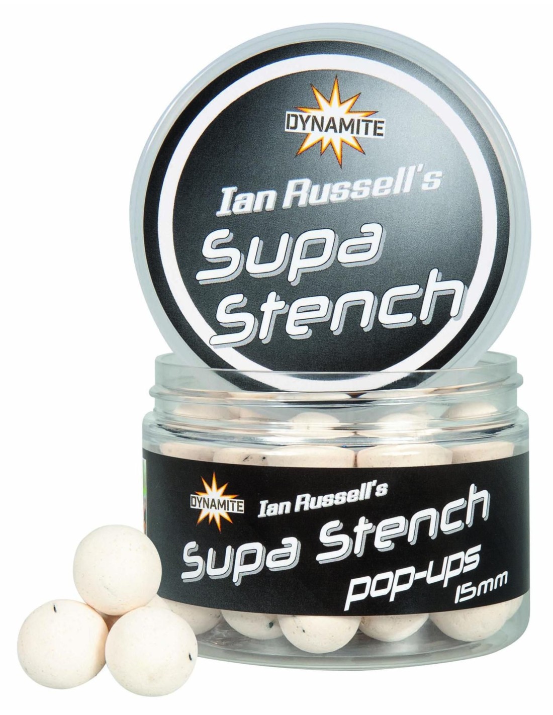 Pop Up-urile Dynamite Baits Supa Stench au o culoare alba intensa, care iese in evidenta pe aproape orice substrat si o combinatie extrem de puternica de arome de peste si crustacee, uleiuri esentiale si acid N-Butyric. Disponibile pe dimensiunea de 12mm si 15mm, pop up-urile Supa Stench sunt foarte flotante si sunt concepute pentru monturi de crap moderne, cum ar fi Ronnie/Spinner Rig si pot fi folosite pe toata durata sezonului, atat izolat, cat si pe paturi de nada, atunci cand vrem sa scoatem in evidenta momeala.