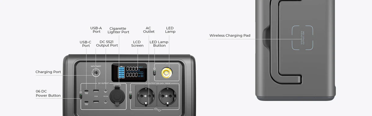 Statie de energie portabila BLUETTI EB70 , Putere compacta, durabilitate exceptionala Baterie durabilitate Capacitate de 716, Wh, bazata pe celule LiFePO, , recunoscute pentru siguranta termica si cicluri lungi de viata (peste 2.500 cicluri pana la 80, % din capacitate). Ideala pentru utilizare pe termen mediu si lung, fara degradare rapida. Garantie de 2 ani. Putere de iesire performanta Invertor pur sinus de 700, W continuu (sau 1.000, W la unele versiuni), cu varf de 1.400, W. 4 iesiri AC, compatibile cu prize 220, 240, V. Porturi multiple: 2?mdash; USB, C PD 100, W 2?mdash; USB, A 5, V 3, A 2?mdash; 12, V 10, A DC + priza auto Pad wireless de 15, W Poate alimenta pana la 10 dispozitive simultan si este suficienta pentru mini-frigidere, laptopuri, echipamente de camping, lumini etc. Incarcare rapida optiuni diverse Intrare AC de pana la 200, W , incarcare completa in 3, 4 ore. Incarcare solara MPPT de max. 200, W (12, 28, V) , 3, 6 ore pana la plin. Priza auto 12 24, V , incarcare in aproximativ 7, 8 ore. Potrivita pentru utilizare outdoor, oferind flexibilitate la sursele de incarcare. Design portabilitate Dimensiuni: 32 ?mdash; 21,6 ?mdash; 22,1, cm. Greutate: 9,7, kg. Maner ergonomic pliabil , usor de transportat, ideala pentru camping, rulote, activitati in aer liber. Functii smart siguranta Mod ECO: opreste invertorul automat atunci cand nu este detectat consum , eficientizeaza consumul de energie. BMS + MPPT integrat: protectie la scurtcircuit, suprasarcina, supratensiune si temperaturi extreme. Functionare silentioasa si fara emisii , sigura pentru uz interior si exterior. Beneficiile centralei electrice pe scurt Capacitate de 716, Wh, ideala pentru alimentarea laptopurilor, aparatelor mici si echipamentelor de camping. Putere de 700, 1.000, W continuu, cu varf de 1.400, W , poate sustine si aparate mai solicitante. Incarcare rapida prin priza, solar sau auto , versatilitate excelenta. Design portabil si robust. Baterie LiFePO, cu peste 2.500 cicluri , durabilitate ridicata. Protectii electronice avansate si functionare silentioasa. Recomandari de utilizare a centralei electrice portabile Ideala pentru: camping, activitati outdoor, vanlife, pescuit, iesiri cu rulota. Solutie de backup acasa pentru aparate esentiale. Exemple de autonomie: Mini-frigider ( 45, W): aproximativ 15 ore. Telefon ( 11, Wh): pana la 65 de incarcari. Laptop ( 60, Wh): pana la 11 cicluri complete.