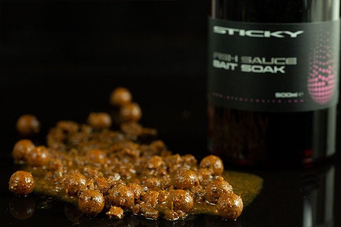 Fish Souce Bait Soak de la Sticky Baits este un lichid nutritiv folosit in ultimii ani din ce in ce mai mult in retetele de boilies. Provine din Thailanda, unde de 60 de ani reprezinta unul din cele mai utilizate sosuri din peste in bucatariile thailandeze. Din anul 1974 el a inceput sa fie exportat si in restul continentelor. Obtinut integral din anshoa proaspete si fermentat in mod natural timp de 18 luni , Fish Souce este un lichid nutritiv pur natural fara conservanti sau potentiatori de gust, cu o aroma puternica de peste si de culoare maro-rosiatica.